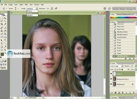 I'm not the best in make up because I'm not a girl and haven't done this before, so don't take amiss, I'll just show you the technique how to do this;) Choose Burn Tool and set it to mid tones, exposure as you wish.
