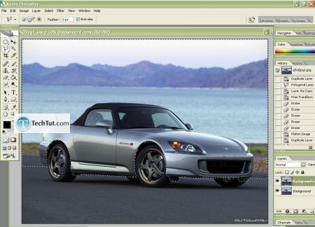 1. First use the Polygonal Lasso Tool(L) to select the Area around the Car something like this.